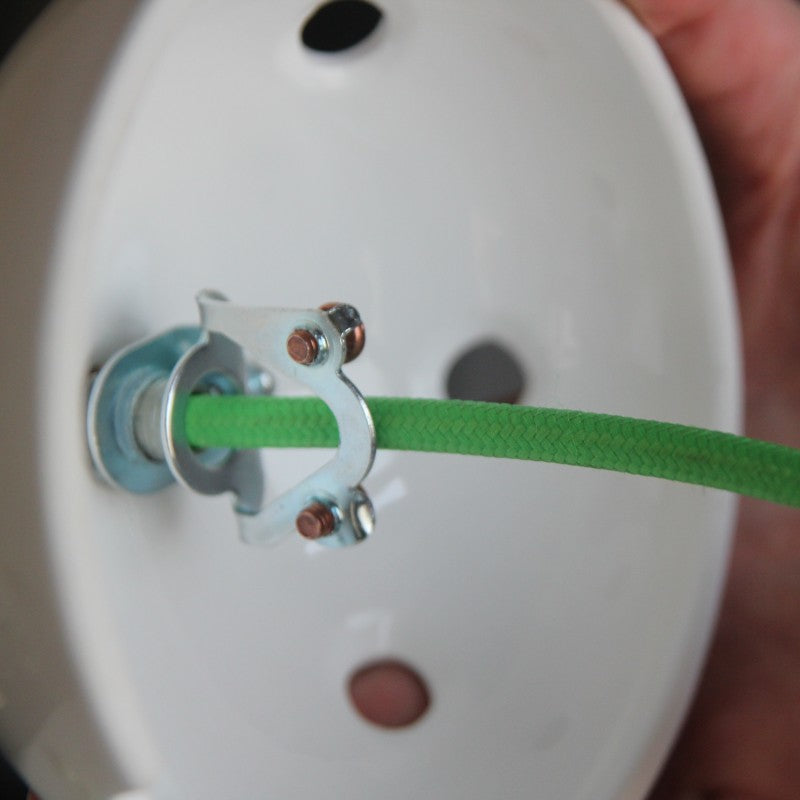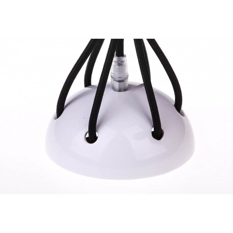 Diese keramische Deckenrosette mit 6 umlaufenden Löchern und einem mittig gesetzten ist ideal für die Kombination mit mehreren Textil-Kabel und Keramikhülsen. Die Farbe ist weiss lackiert.