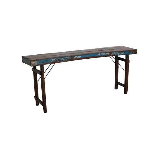 Ausklappbarer Konsolentisch aus Altholz, blau