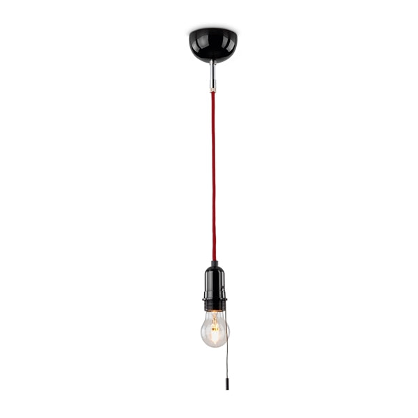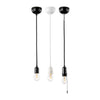 Jede Leuchte ist mit einem 1,5 m langen textilummantelten Kabel und einem glasierten Porzellanbaldachin 9,5 cm Ø in Schwarz oder Weiss ausgestattet. Lieferung ohne Leuchtmittel. IP 20.