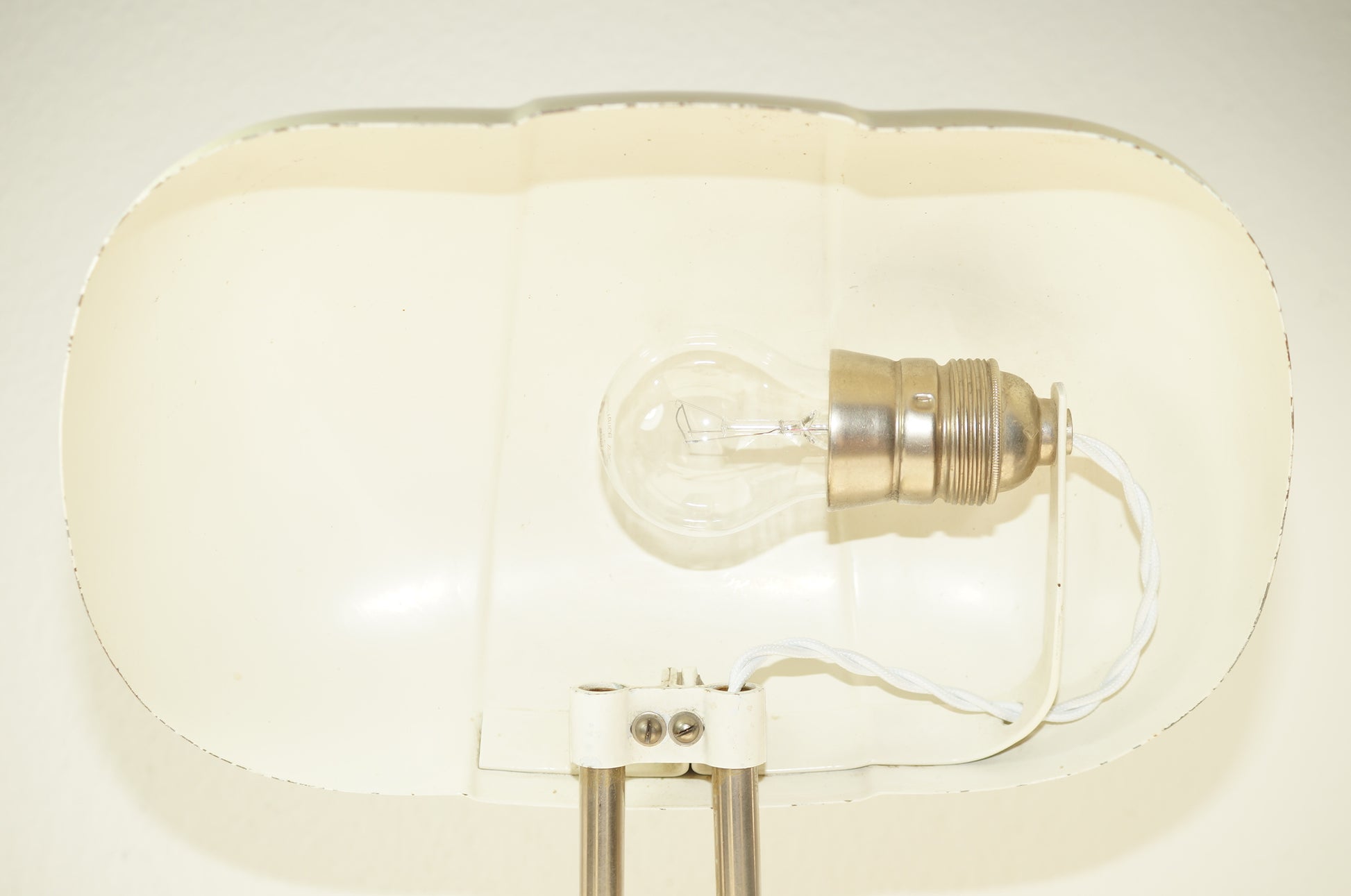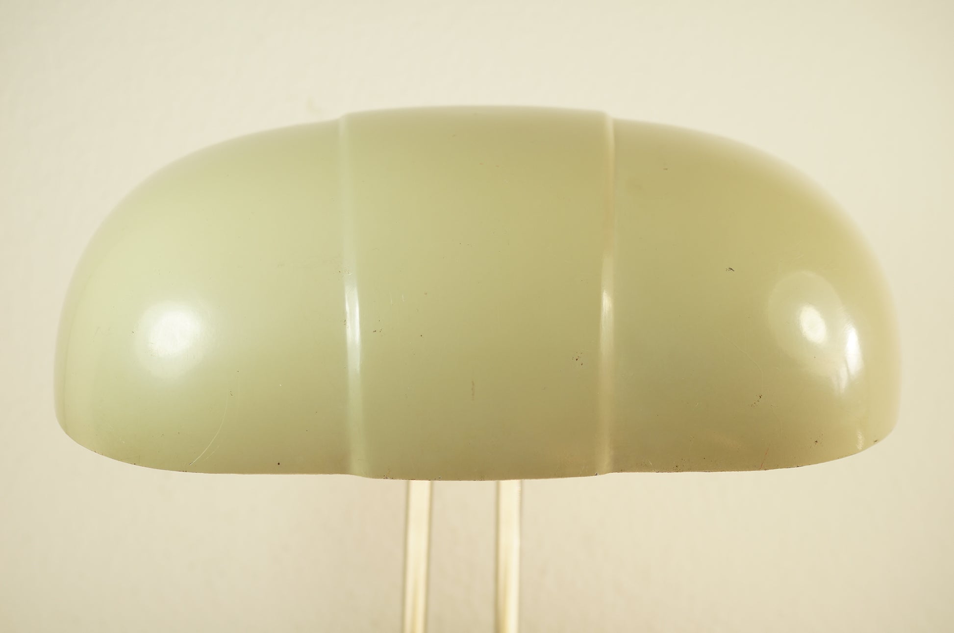 Die Lampe wurde komplett überprüft und den neuen Sicherheitsanforderungen (Schutzklasse 1) angepasst. Sie hat einige Gebrauchspuren auf dem Sockel. Ansonsten ist sie in einem guten, dem Alter entsprechenden Zustand. Der Filz am Sockel wurde auch erneuert (grau).