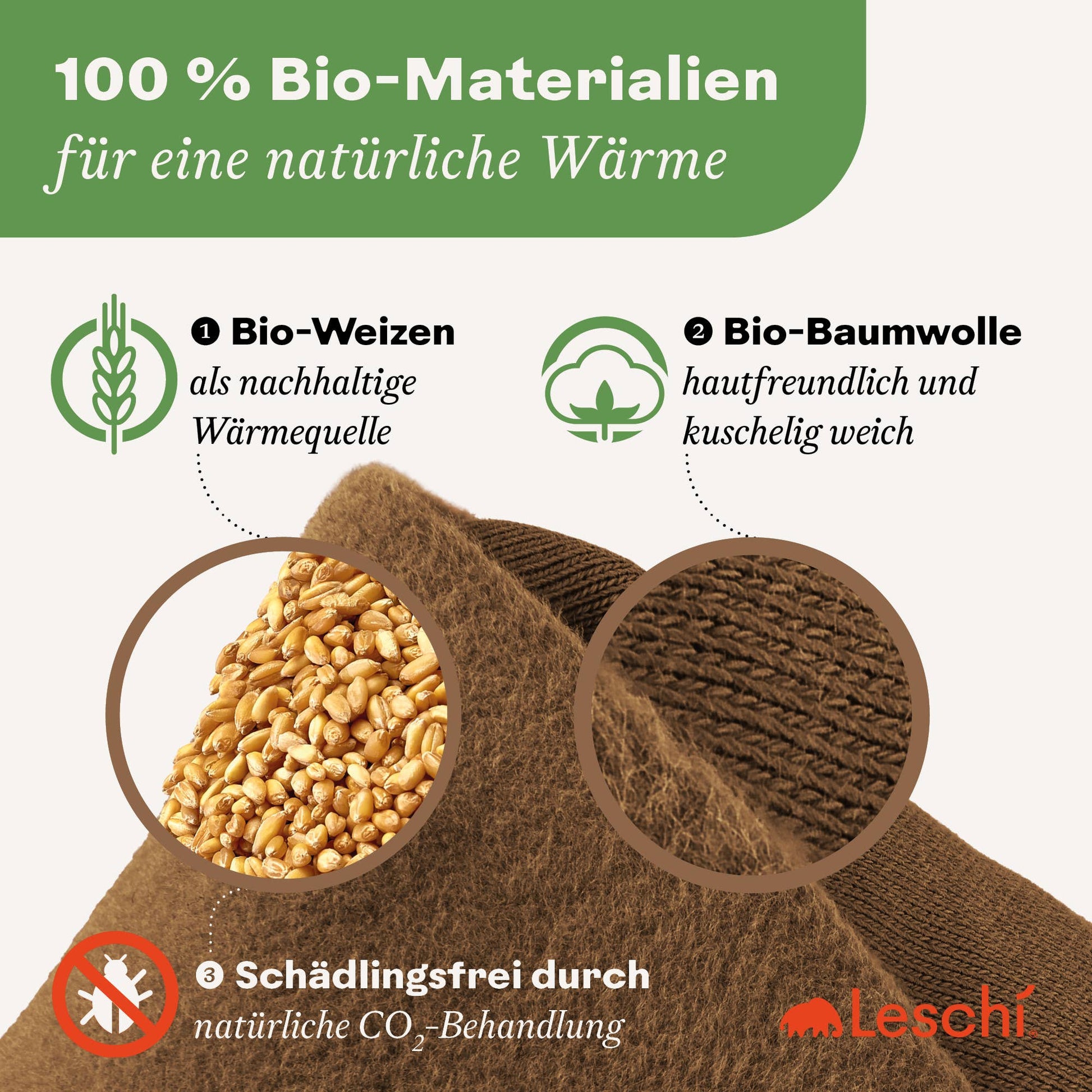 - Füllung: 100 % Bio-Weizen