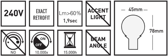 Ohne Quecksilber oder andere schädliche Umweltstoffe. Die Energieersparnis gegenüber einer herkömmlichen Glühlampe beträgt 90% bei gleicher Lichausbeute (Lummen). Der Gesamteindruck der LED Lampe entspricht der einer Glühlampe und kann damit als Dekorationsleuchte eingesetzt werden.