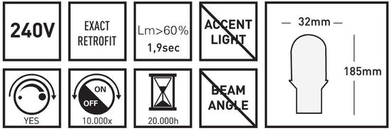 - Dimmbar: Ja (mit LED Dimmer)Spannung: 240V