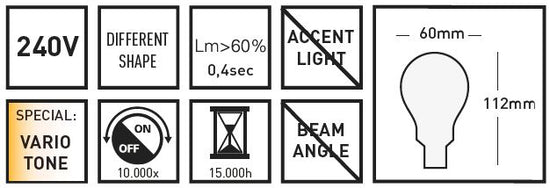 Diese neuartige Variotone Leuchte ist eine weitere Besonderheit von Calex. Mit dem dimmen des LED Licht wurde dieses bisher zwar dunkler aber nicht wärmer. Anders wie bei herkömlichen Glühlampen, bei welchen auch die Lichtfarbe wärmer wurde. Bei dieser LED ist alles anders. Sie verändert den Farbeindruck und reguliert von 2700ºK auf warme 2100 ºK was in etwa dem Lichteindruck einer Kerze entspricht. Seien Sie mit dieser LED ganz vorne dabei bei der Entwicklung der LED Erfolgsgeschichte!