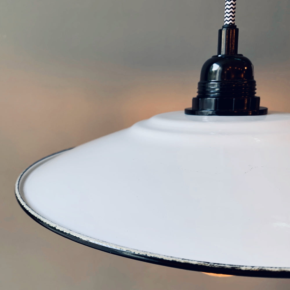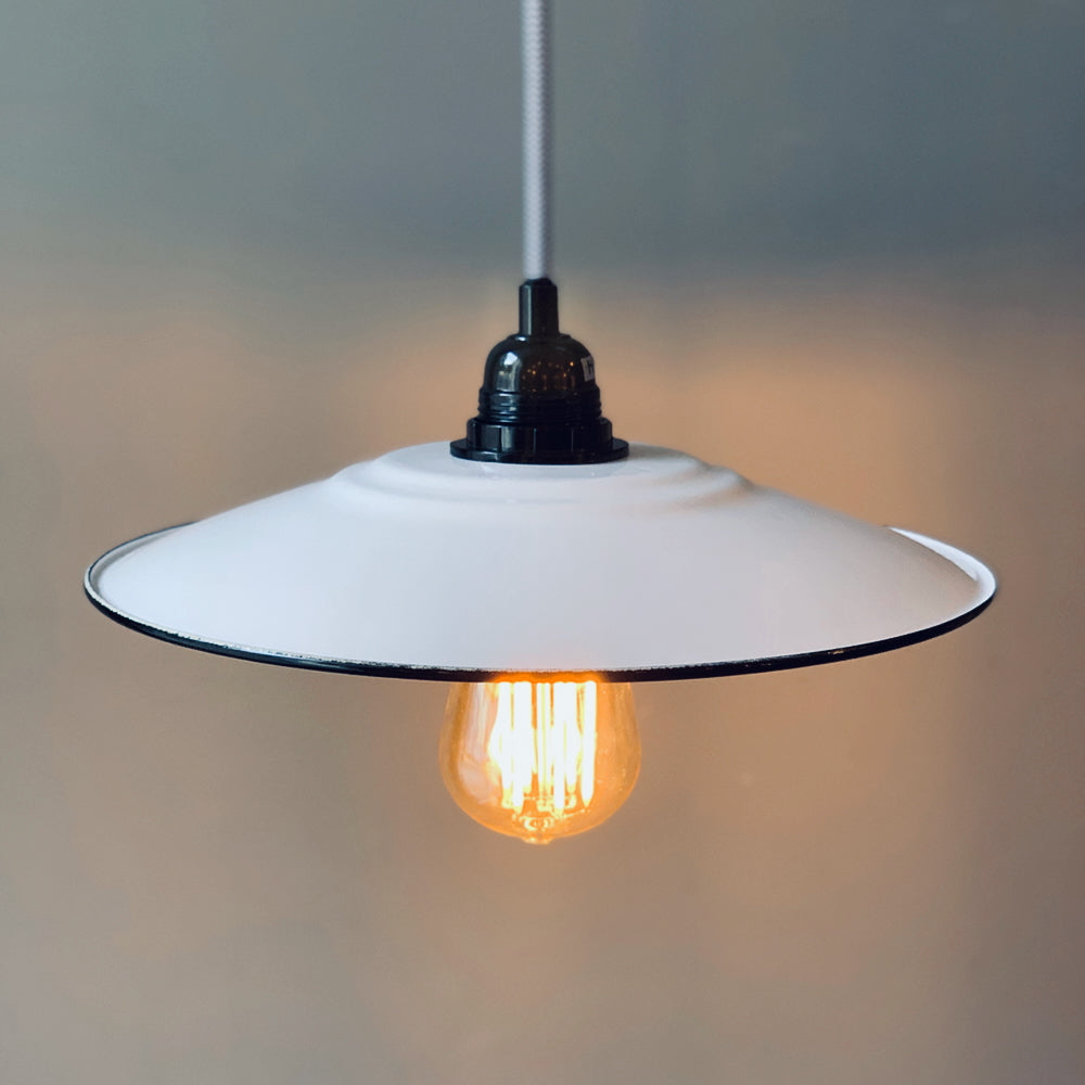 Bestellen Sie jetzt Ihren Emaille-Lampenschirm Weiss Ø 27 cm und bringen Sie authentischen Industrie-Charme in Ihre Räume!