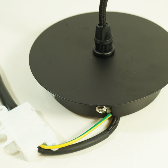 Zementleuchte mit schwarzem Textilkabel und einer Deckenrosette aus Metall (schwarz). Für alle Leuchten mit E27 Anschluss geeignet. Inkl. E27 Leuchtmittel.