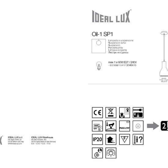 - max 1 x 60W E27 / 240V