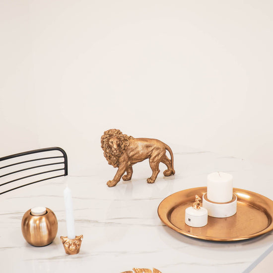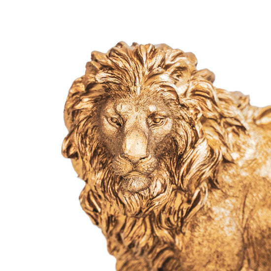 Bringen Sie mit diesem imposanten Löwen-Ornament in Gold Stärke und Charakter in Ihre Einrichtung. Diese kraftvolle Statue ist nicht nur ein Blickfang, sondern auch ein Symbol für Eleganz und Dominanz, das jedem Raum eine besondere Atmosphäre verleiht.