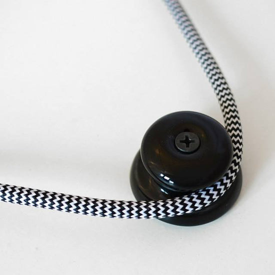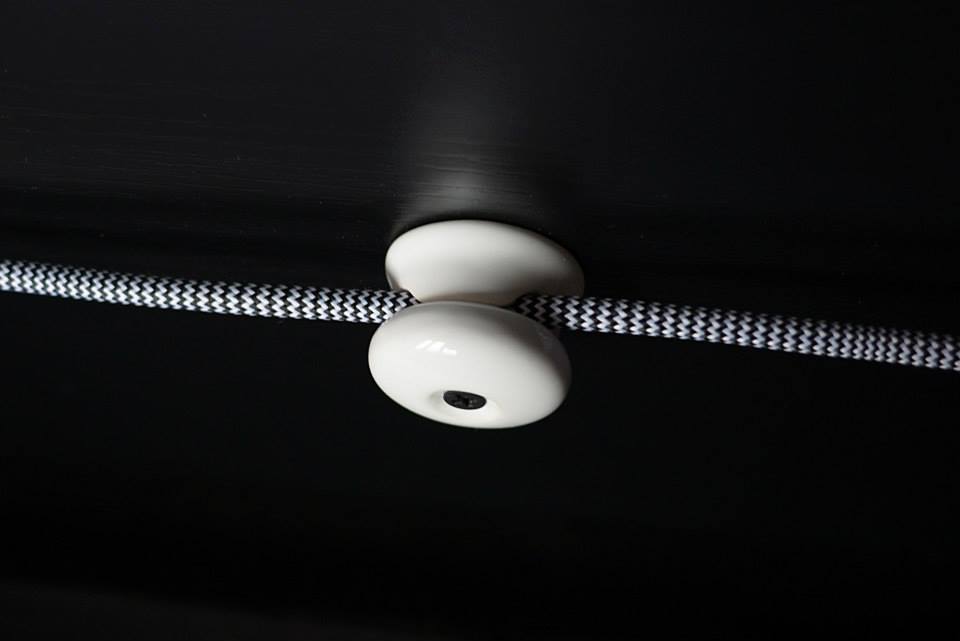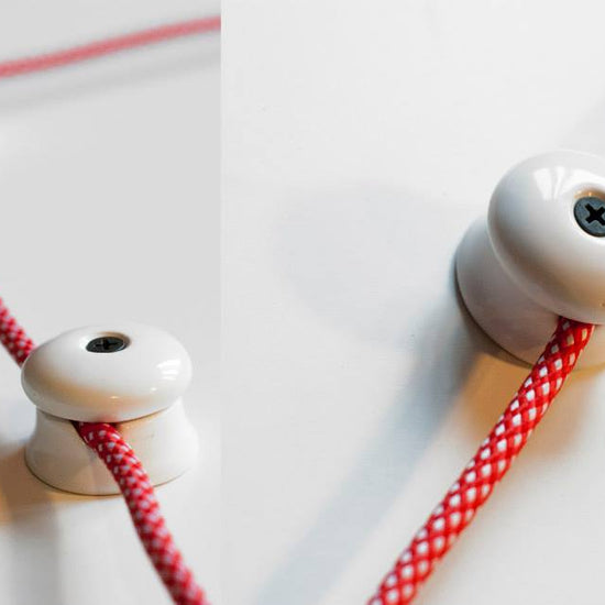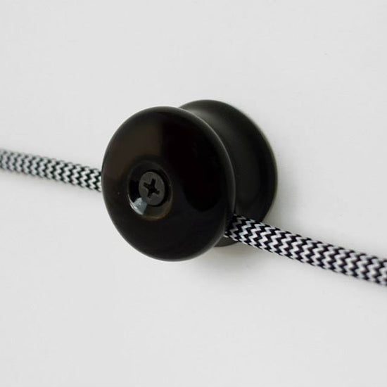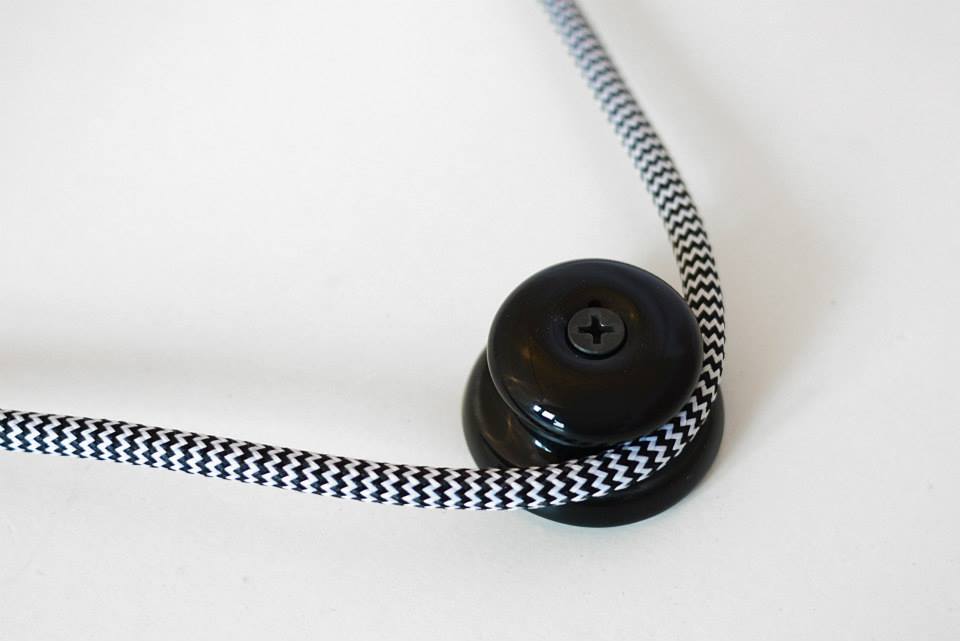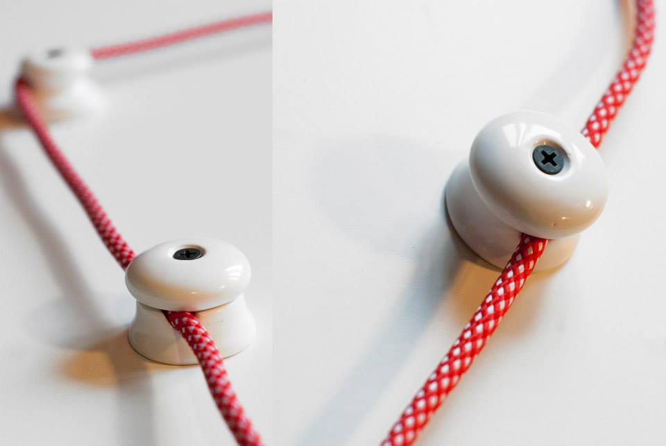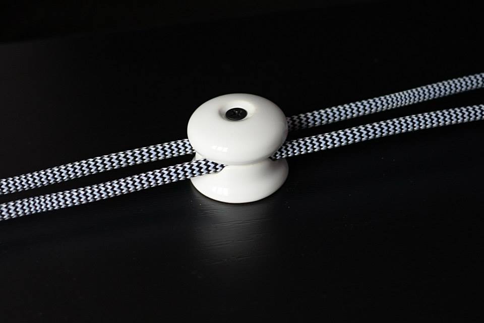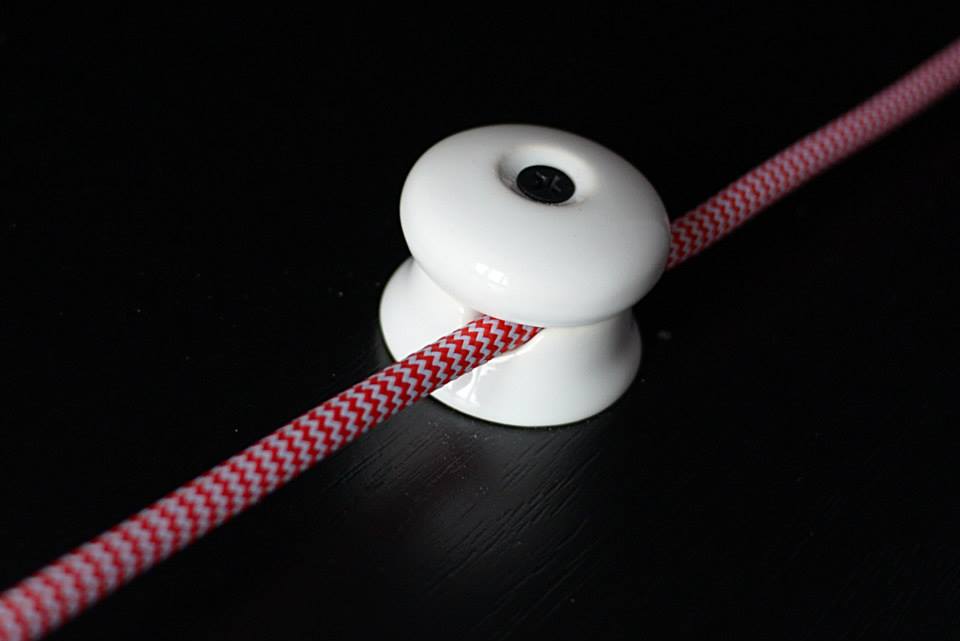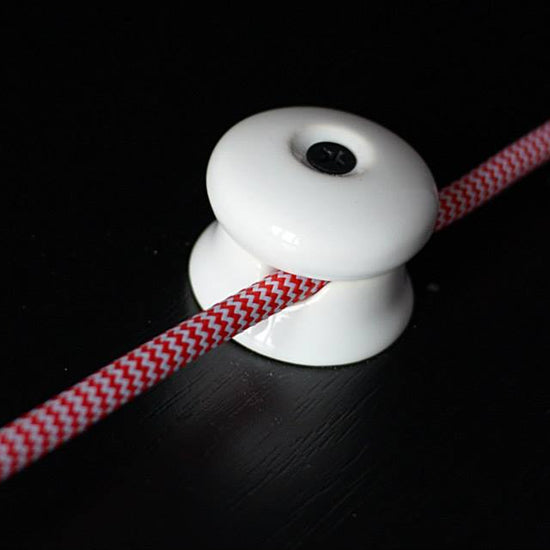 Eine spezielle Kabelführung für Textilkabel, simpel jedoch gleichzeitig unglaublich praktisch und optisch ansprechend. Die Kabelführungen sind aus hochwertigem Porzellan gefertigt und einzigartig in ihrer Art. Diese kleinen, knopfartigen Kabelhalter und Kabelführungen werden sauber mit nur einer Schraube an Decken und Wänden befestigt werden. Es gibt diese in verschiedenen Ausführungen: