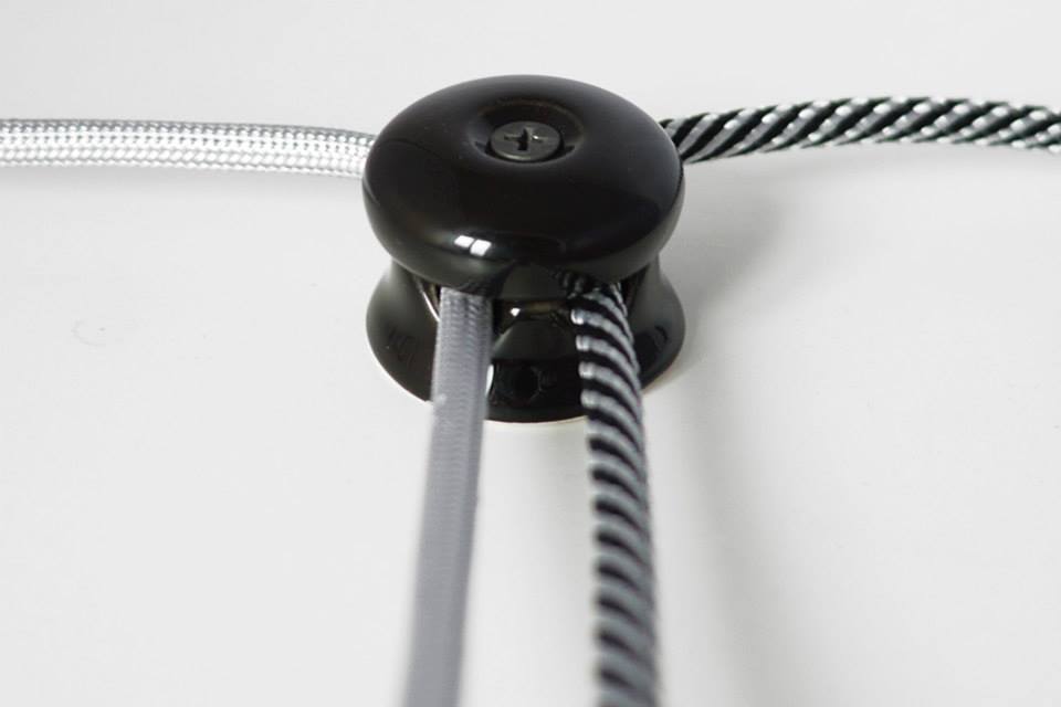 Alle Führungslöcher sind passend für die zwei- und dreiadrigen Textilkabel. Wer mag, kann sich damit auch künstlerisch verwirklich und die bunten Textilkabel in viele Formen umlenken oder anders zur Geltung kommen lassen.