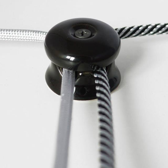 Alle Führungslöcher sind passend für die zwei- und dreiadrigen Textilkabel. Wer mag, kann sich damit auch künstlerisch verwirklich und die bunten Textilkabel in viele Formen umlenken oder anders zur Geltung kommen lassen.