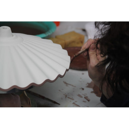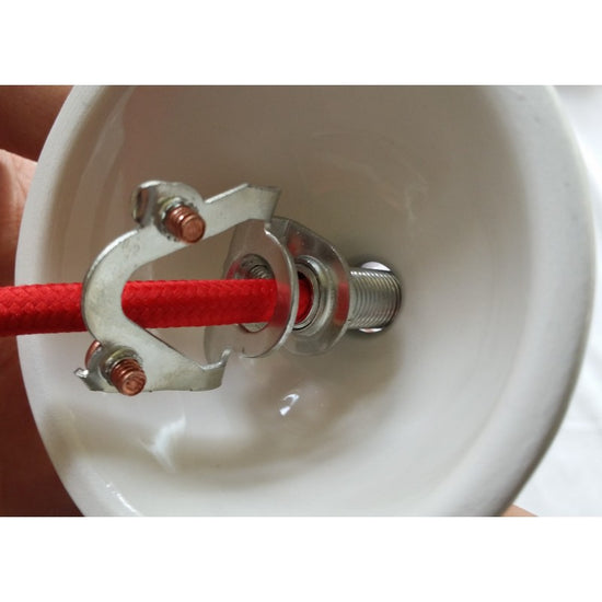 Mini Keramikbaldachin 7.5 cm Durchmesser, handgefertigt. Ideal um Pendel- und Hängeleuchten mit Textilkabel zu gestalten.