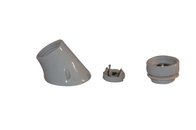 Keramik Lampenfassung gewinkelt mit E27 Gewinde. Für die Wandmontage geeignet.