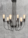 Kronleuchter im puristischen Stil: Der schwarze Hingucker ist nicht nur hinsichtlich der E27 Leuchtmittel wandelbar, sondern lässt sich auch ganz individuell anpassen, indem sich die Fassungen in der Höhe verschieben lassen.
