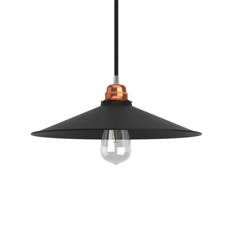 Swing, tellerförmiger Lampenschirm aus lackiertem Metall in schickem, vollflächigem Schwarz matt: