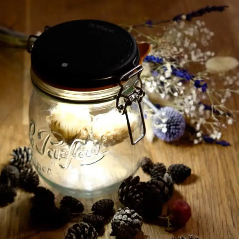Der Klassiker unter den Einmachgläsern konserviert jetzt nicht mehr nur Früchte und Gemüse, sondern auch Sonnenlicht! Die Le Parfait Solar Pro Touch 3,7 V ist mit einem Solarpanel der neusten Generation versehen, damit fangen Sie tagsüber Sonnenlicht ein und lassen es in der Nacht wieder entfliehen. Für bewölkte und regnerische Tage liegt ein USB Kabel bei, mit welchem diese einzigartige Tischleuchte mit genügend Strom für viele Stunden Licht versorgen lässt.