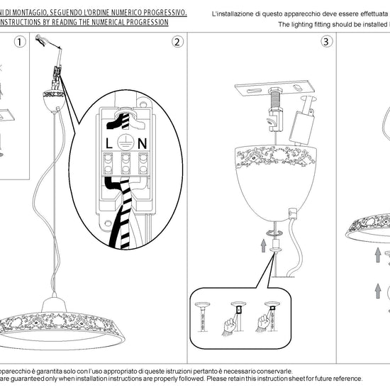 Schöne Pendelleuchte, weiss matt mit schönem Relief Dekor in Gips. Elektrokabel längenverstellbar. Lieferung exkl. Leuchtmittel.