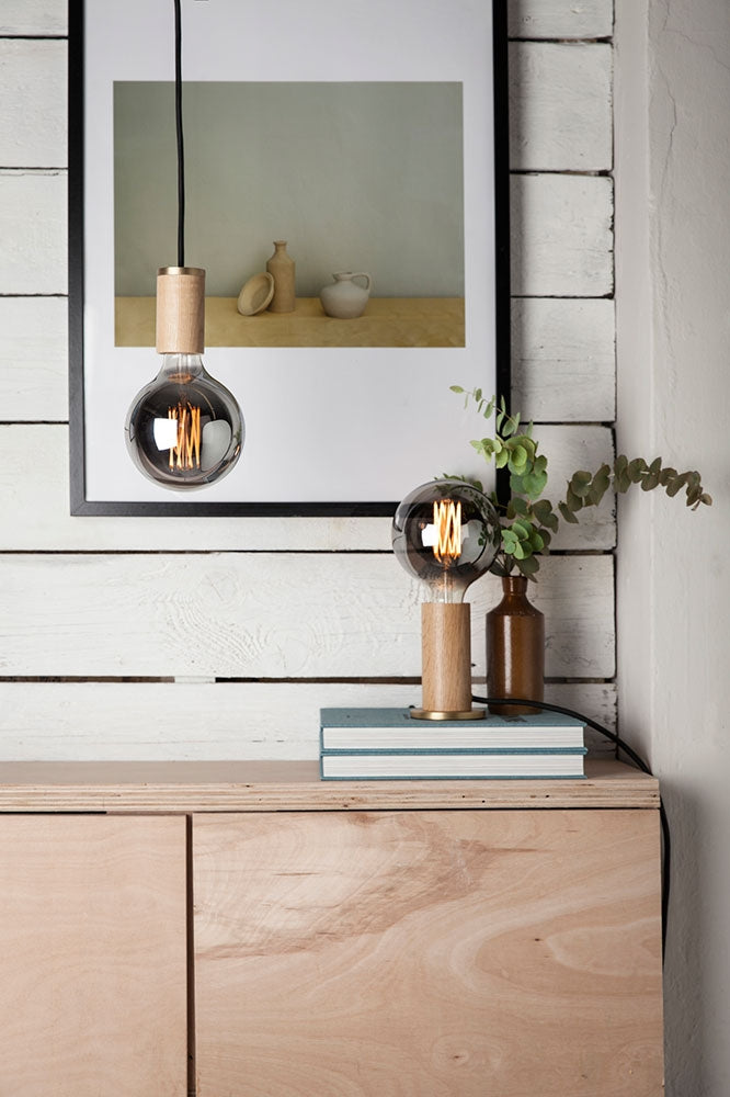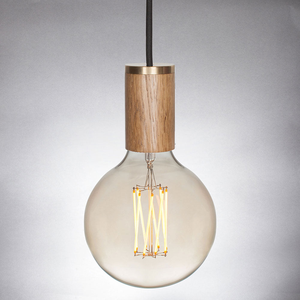 Die zeitlos schöne, solide Pendelleuchte ist aus FSC-zertifiziertem amerikanischem Eichenholz gefertigt und trägt einen feinen Messing-Abschluss. Sie lässt sich perfekt mit den unterschiedlichsten Glühbirnen kombinieren. In Gruppen aufgehängt bekommt diese Pendelleuchte einen extra Wow-Effekt.
