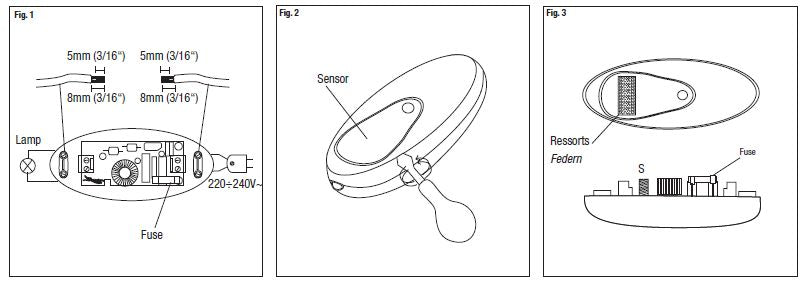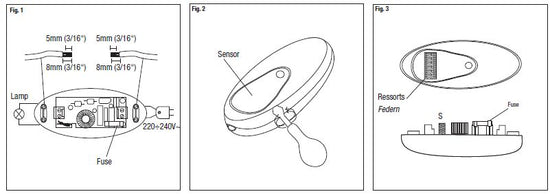 Sensorfläche. Zur Regelung der Lichtstärke die Sensorfläche so lange berühren, bis die