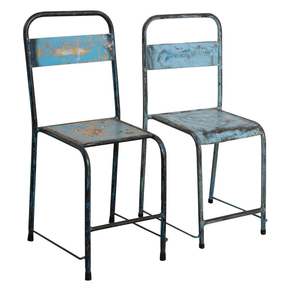 Die bunten Stühle aus Alteisen sind echte Originale. Durch den jahrelangen Einsatz in Indonesischen Cafés und Bars hat jeder Stuhl individuelle Gebrauchsspuren. Die Stühle wurden mit Klarlack versiegelt und haben eine glatte, saubere Oberfläche.