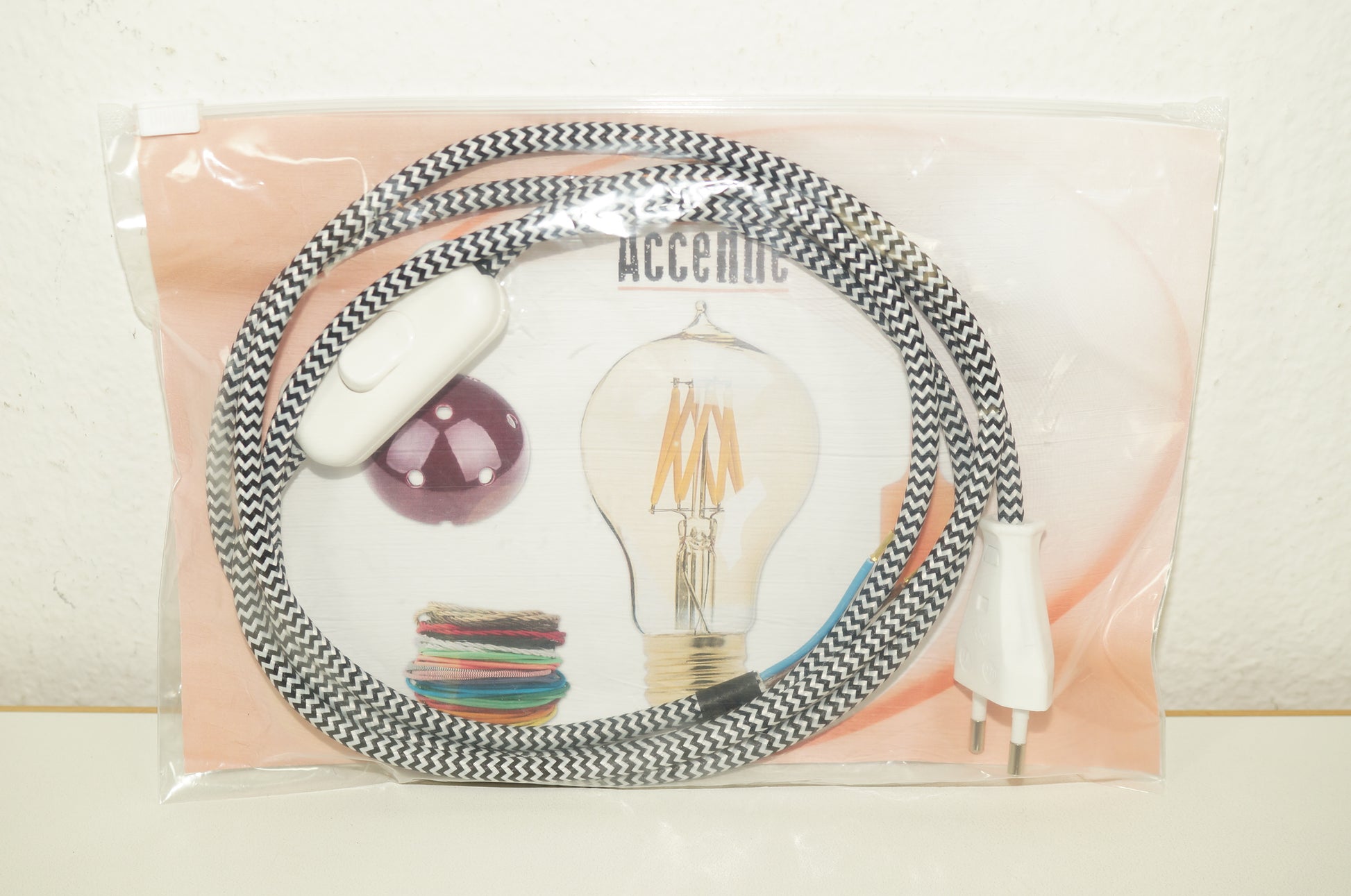 Textilkabel konfektioniert / Schwarz-Weiss ZickZack 2adrig mit Schalter