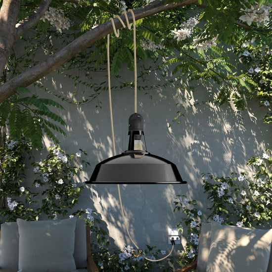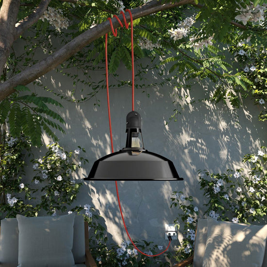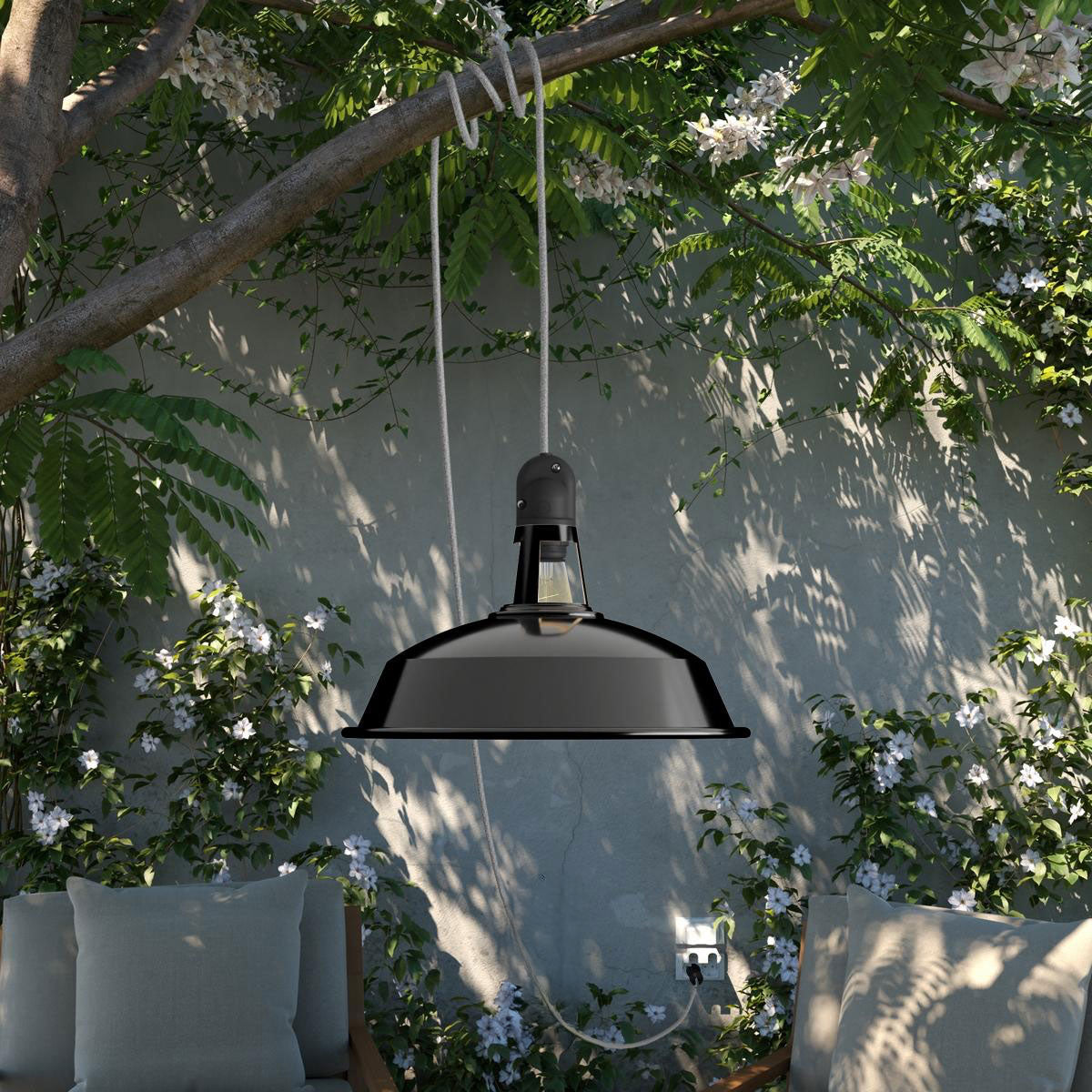 Mit einem wetterfesten Schirm aus lackiertem Metall (Ø 38 cm), einem robusten 5-Meter-Kabel in Wunschfarbe und der innovativen EIVA-Fassung (IP65) trotzt Harbour Regen, Sturm und Sommerhitze. Das Licht wird dank der breiten Öffnung und seitlichen Schlitze angenehm gestreut – ideal für ein stimmungsvolles Abendessen oder entspannte Gespräche unter freiem Himmel.