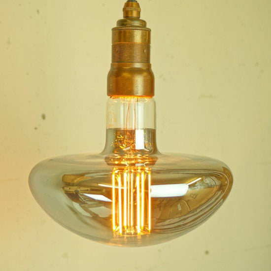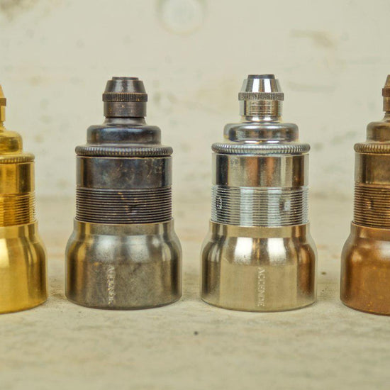 Massive Metall Fassung "english vintage" speziell entwickelt für die Calex Giant XXL und alle grossen E27 Leuchtkörper. Diese schöne Fassung mit entsprechender Blende ist aus England und wird dort in einem kleinen Betrieb hergestellt. Durch die Blende geht die Fassung ansprechend in den Lampenkörper über und sitzt durch das Schraubgewinde passgenau.