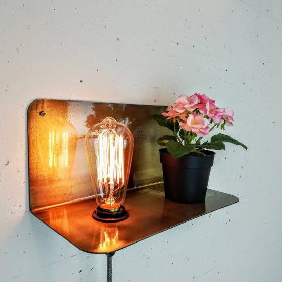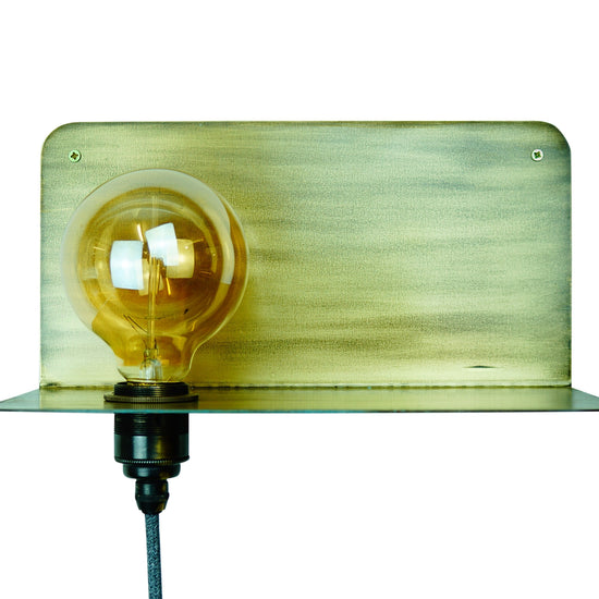 Spezielle Wandlampe, handwerklich in einer kleinen Manufaktur von Hand gefertigt. Diese kleine Lampe ist gleichzeitig auch eine spezielle Ablagefläche für Bücher oder andere Dinge, des täglichen Leben. Ob als Schlafzimmerlampe oder im Flur, unsere 90° macht überall eine gute Figur. Durch die handwerkliche Fertigung ist keine Lampe wie die andere. Herstellungsbedingt sind deshalb kleine Abweichungen von der Bilddarstellung möglich. Wir liefern die Lampe komplett mit einem Textilkabel (2.5m) und einer englischen Vintage Fassung aus.